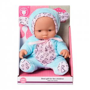 Babypop in blauw pakje - 25 cm