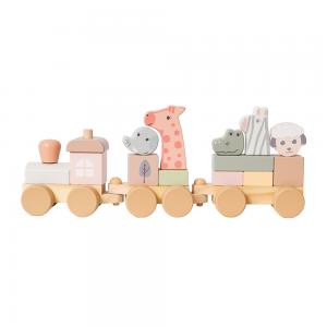 Houten Trein - Wilde Dieren - pastelkleur