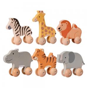 Houten Dieren op Wielen - Wilde Dieren - 6 assorti