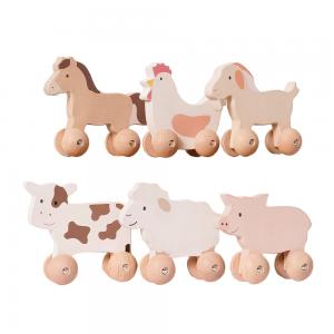 Houten Dieren op Wielen - Boerderijdieren - 6 assorti