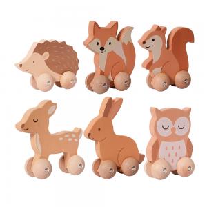 Houten Dieren op Wielen - Bosdieren - 6 assorti