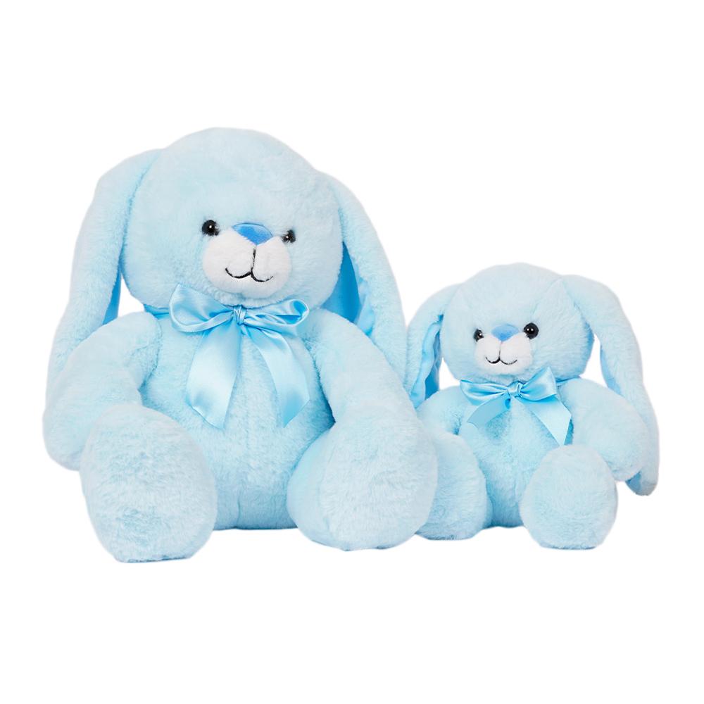 Breng gezelligheid en comfort in huis met deze schattige set van 2 pluche konijnen! Het grotere konijn en het kleinere konijntje zijn beide in een zachte, blauwe kleur en perfect voor knuffelen. Deze knuffels zijn gemaakt van hoogwaardige pluche en bieden urenlang comfort voor jong en oud.