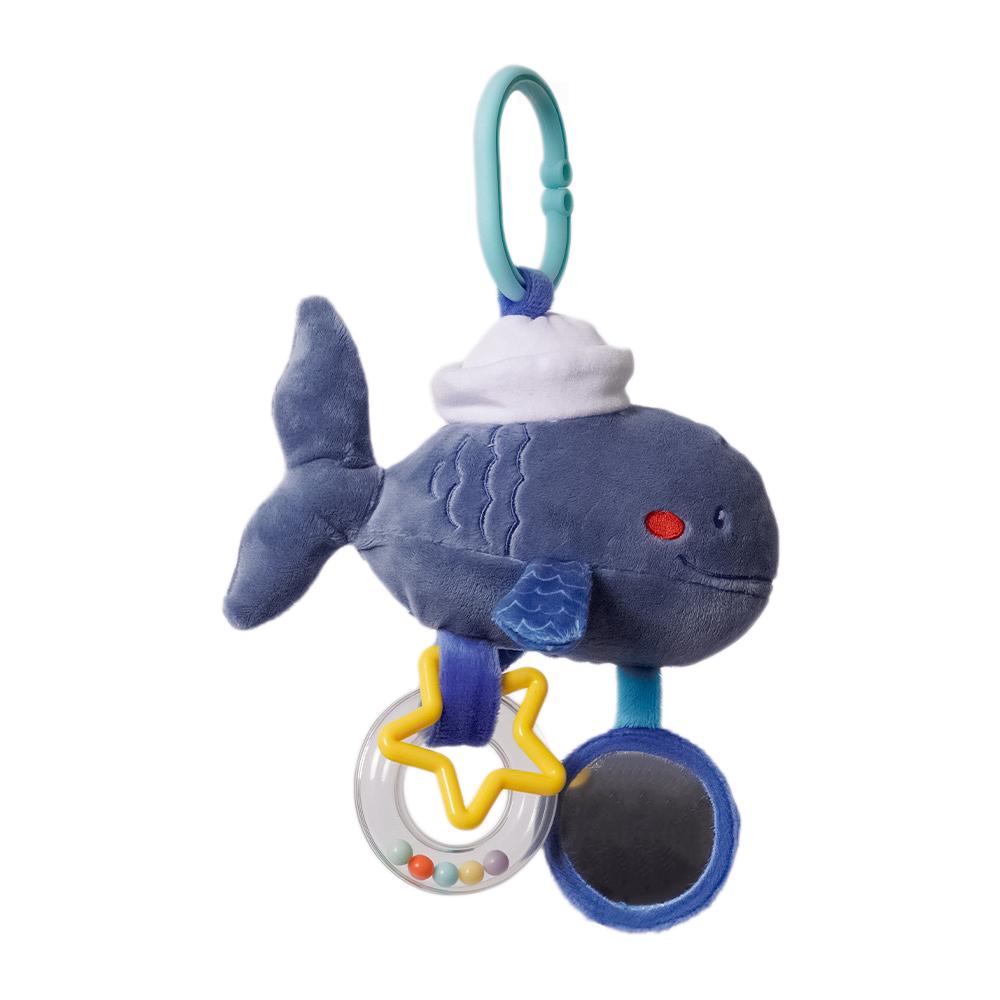 Maak kennis met Stevie Walvis, het veelzijdige buggyspeeltje dat niet alleen schattig is om te zien, maar ook boordevol speelse verrassingen zit. Onder het zachte walvisje hangen een veilig babyspiegeltje, een bijtring en een klein rammelaartje – perfect om de zintuigen van je kleintje te prikkelen.
