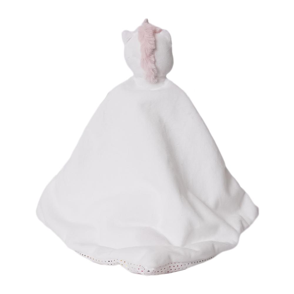 In één van de hoeken van het doekje vind je Luna’s schattige eenhoornkopje, perfect gevormd voor kleine handjes om vast te grijpen en mee te spelen. Zo biedt dit doekje niet alleen comfort, maar stimuleert het ook de fijne motoriek.