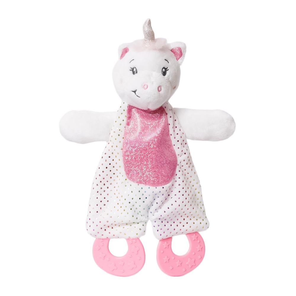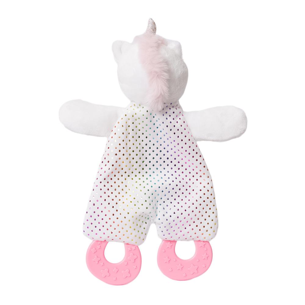 Aan het doekje zit een veilige bijtring, perfect voor kleintjes die tandjes krijgen. Luna’s lieve snoet en zachte pastelkleuren maken haar een betoverend vriendinnetje voor thuis én onderweg.