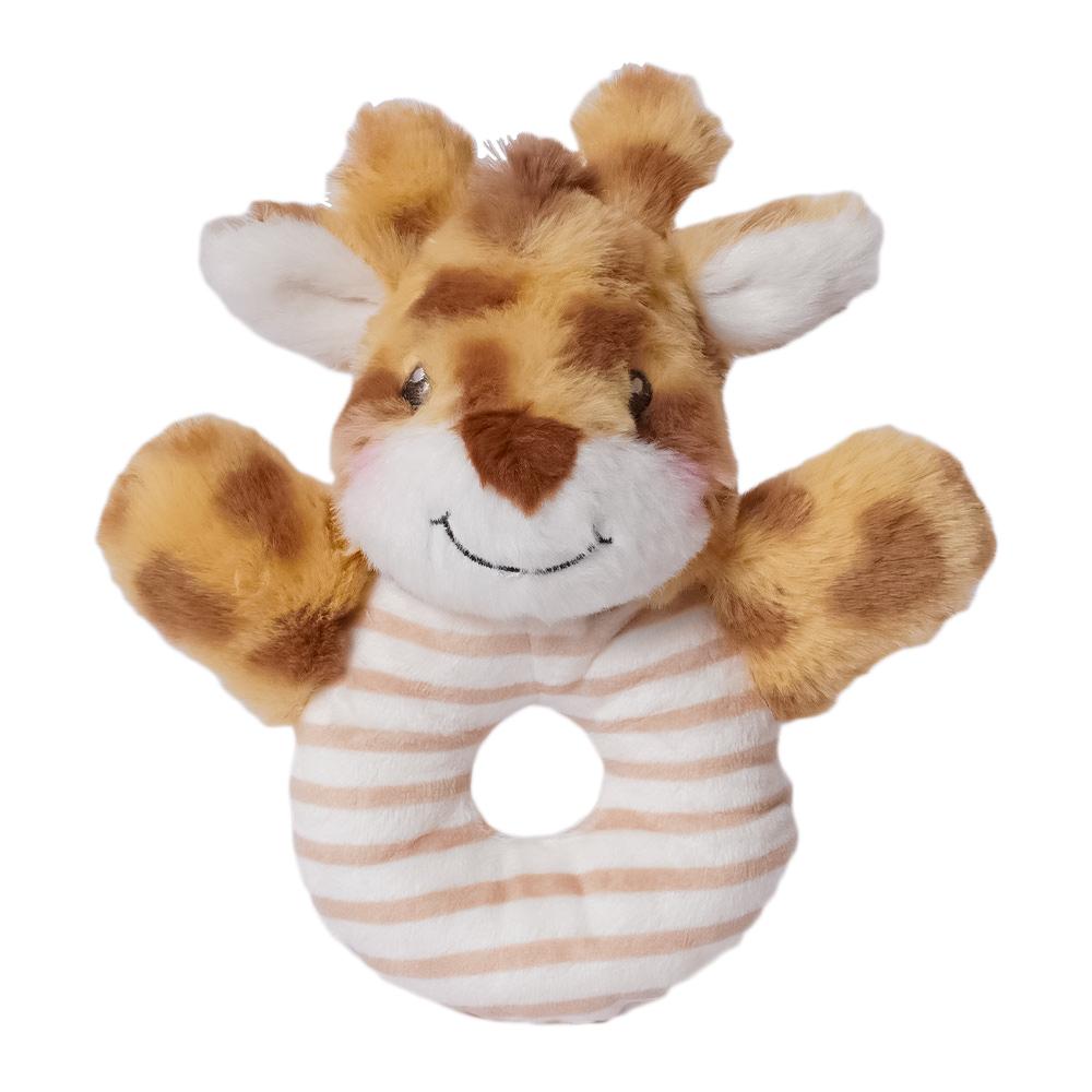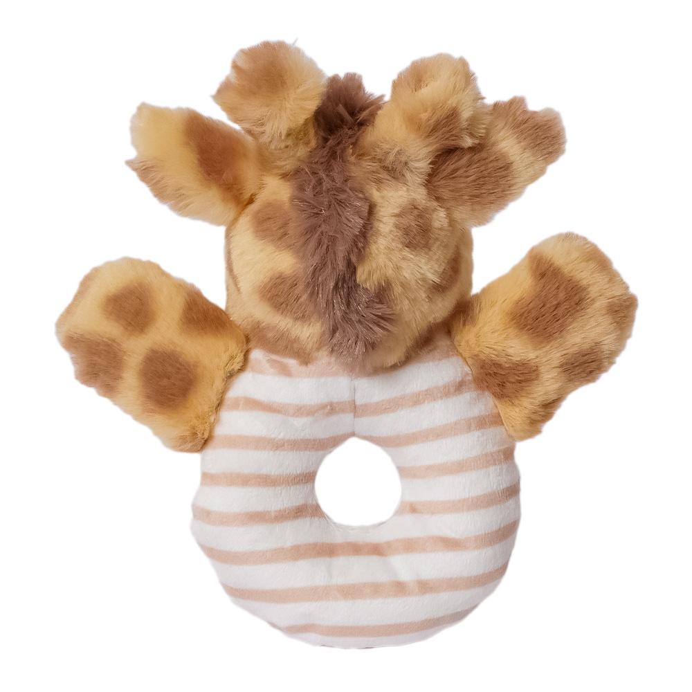 De Raf Giraf Rammelaar maakt een zacht, vrolijk geluid bij elke beweging en stimuleert zo spelenderwijs de zintuigen. Dankzij het lichte gewicht en de zachte materialen is hij makkelijk vast te pakken voor kleine handjes.