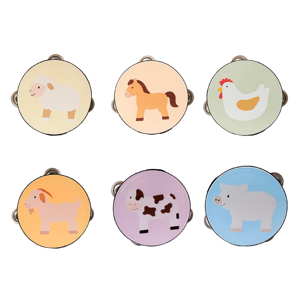 Houten Tamboerijn - Boerderijdieren - 6 assorti