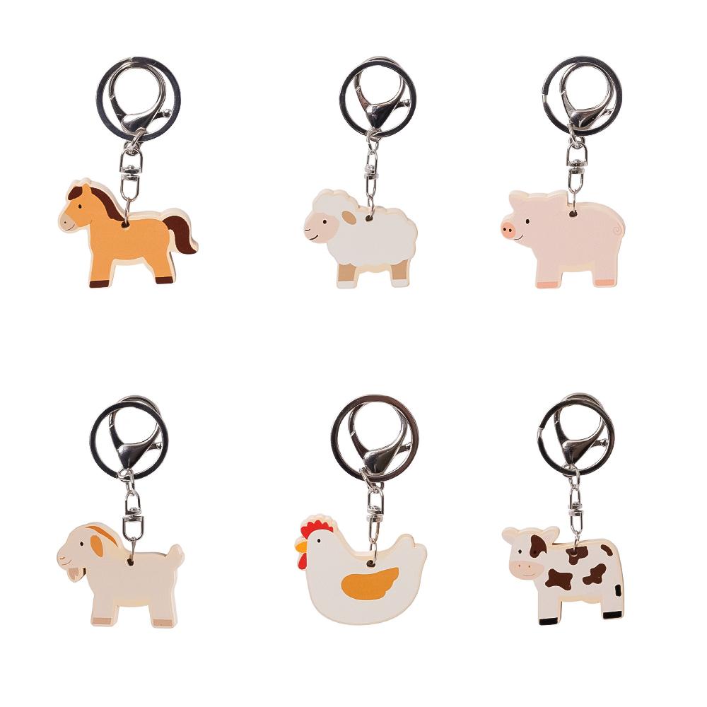Houten Sleutelhanger - Boerderijdieren - 6 assorti