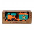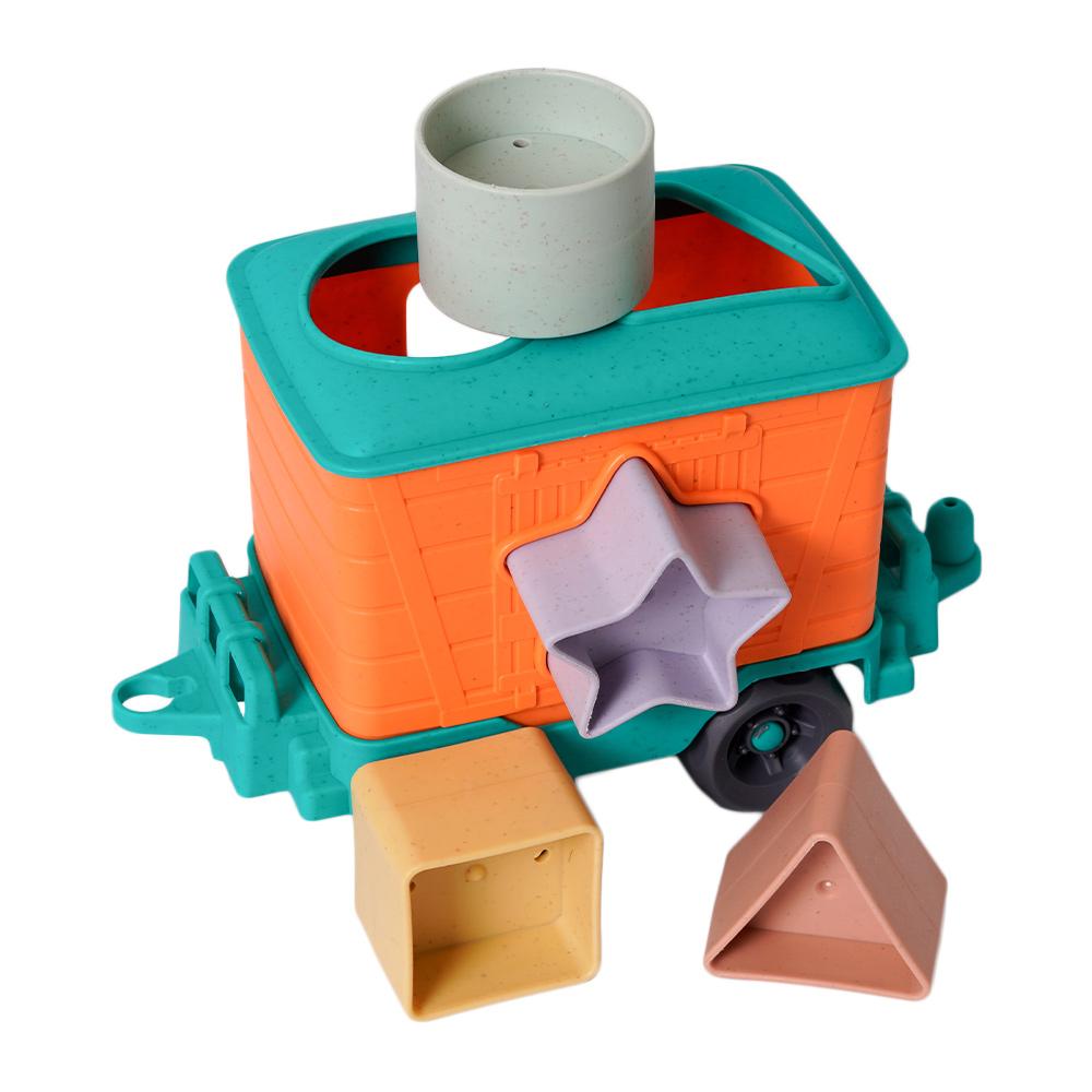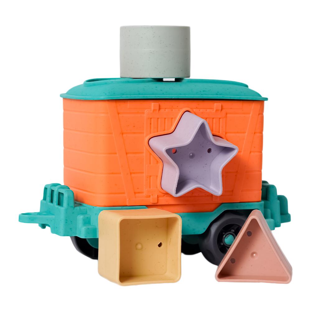 Deze vrolijke trein met twee wagons combineert fantasierijk spel met leerzame elementen. De stevige hoofdwagon trekt een speciale vormenstoof-wagon, waarin kinderen verschillende vormen kunnen sorteren door de juiste openingen. Dit stimuleert hun fijne motoriek, vormherkenning en probleemoplossend denken op een speelse manier.