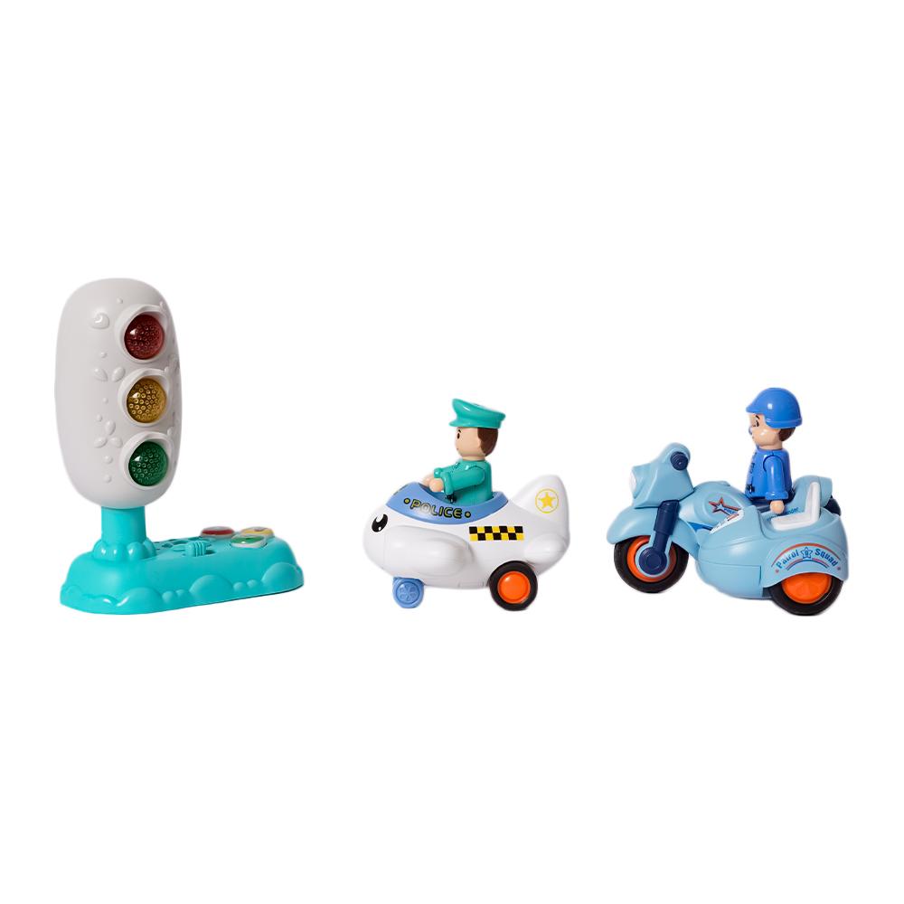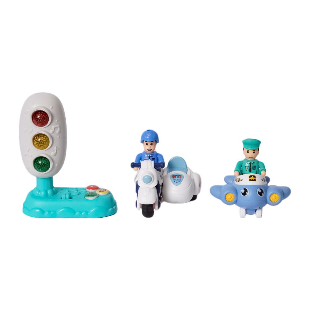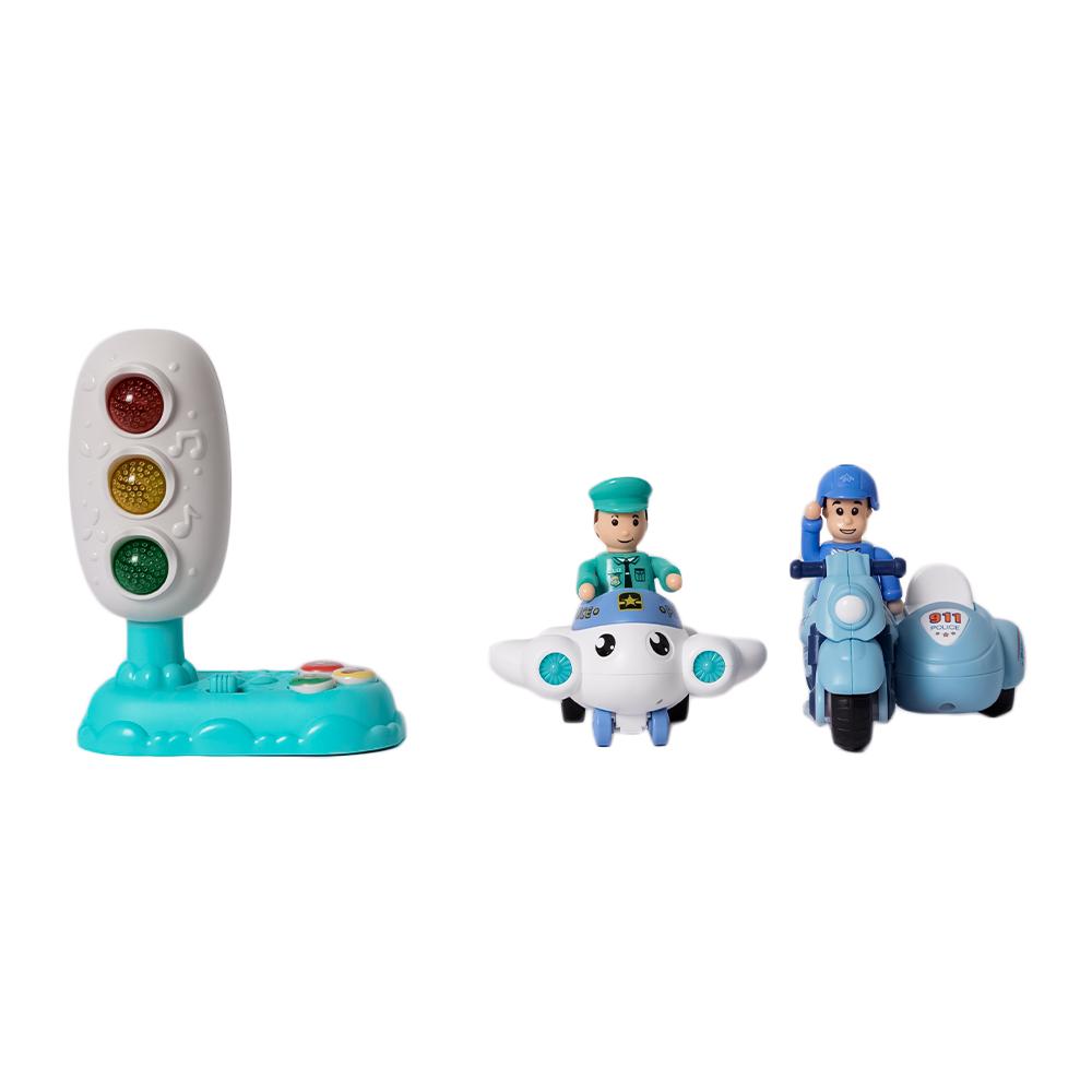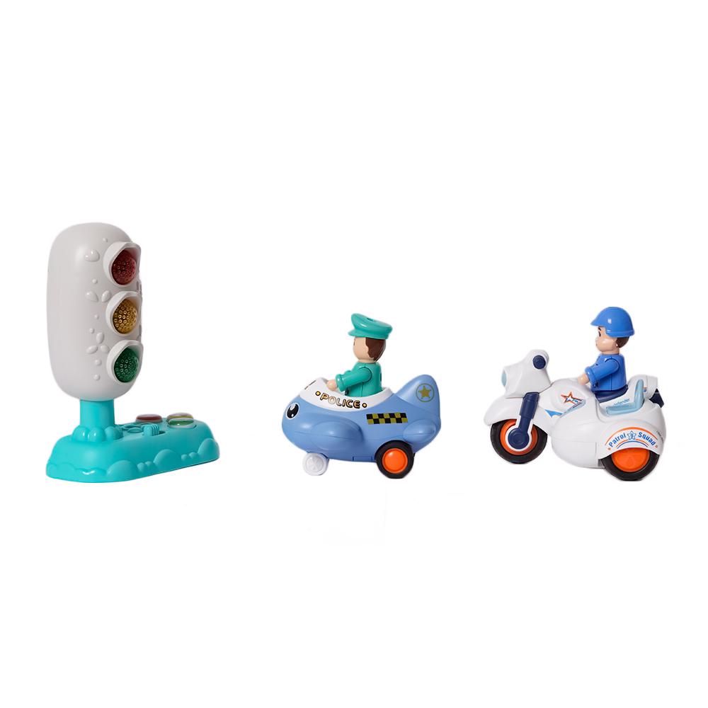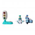 Deze spannende set is perfect voor kleine snelheidsduivels én verkeersregelaars. De set bevat een stoere politiemotor, een tweede motor (voor de achtervolging of de ontsnapping!), een werkend stoplicht met licht en geluid, én een politiemannetje.