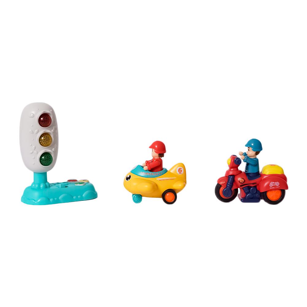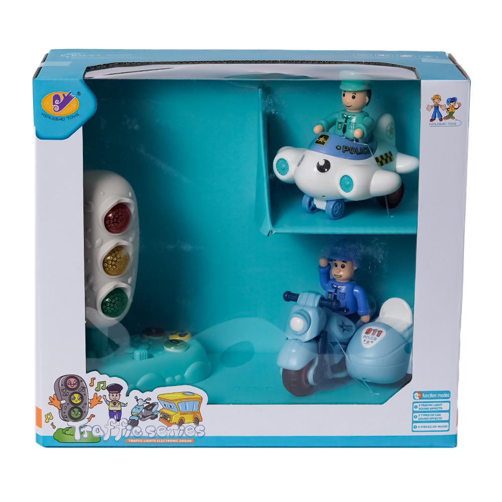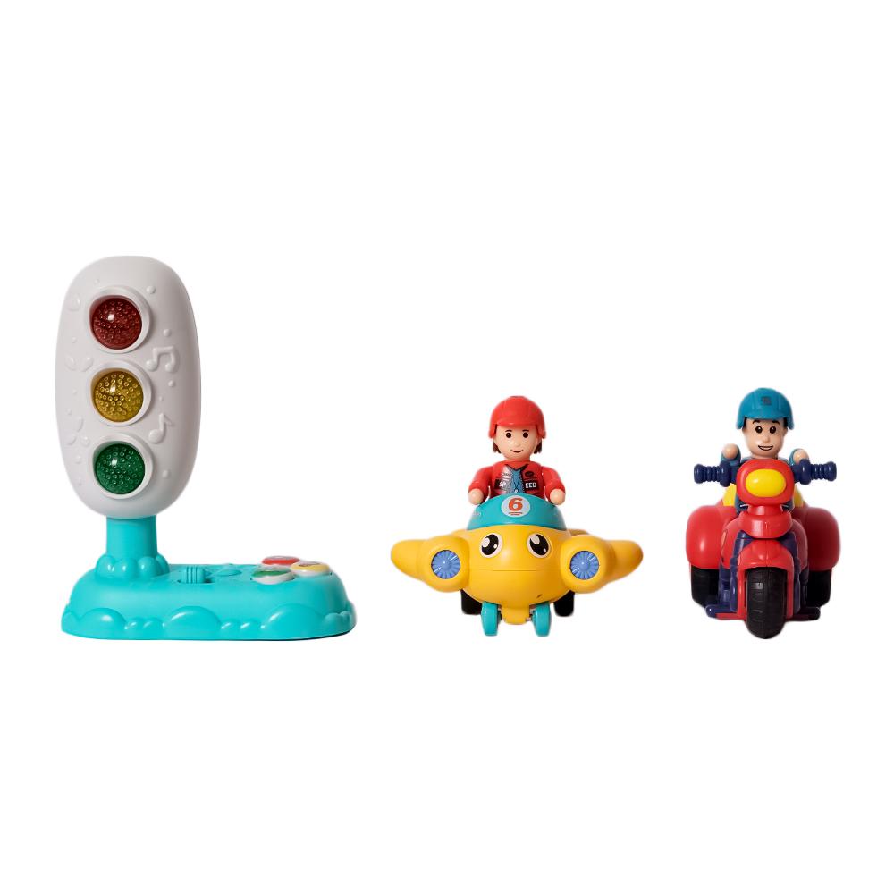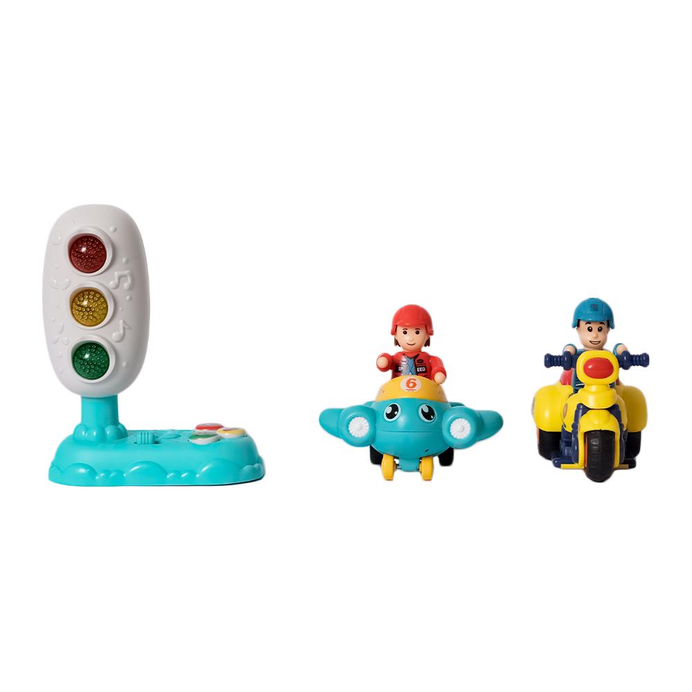 Deze spannende set is perfect voor kleine snelheidsduivels én verkeersregelaars. De set bevat een stoere politiemotor, een tweede motor (voor de achtervolging of de ontsnapping!), een werkend stoplicht met licht en geluid, én een politiemannetje.