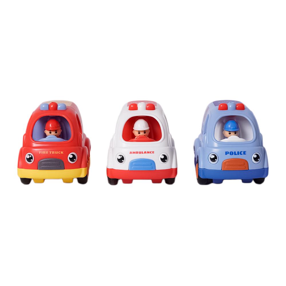 Inhoud: 3 voertuigen – Politie, Ambulance en Brandweer