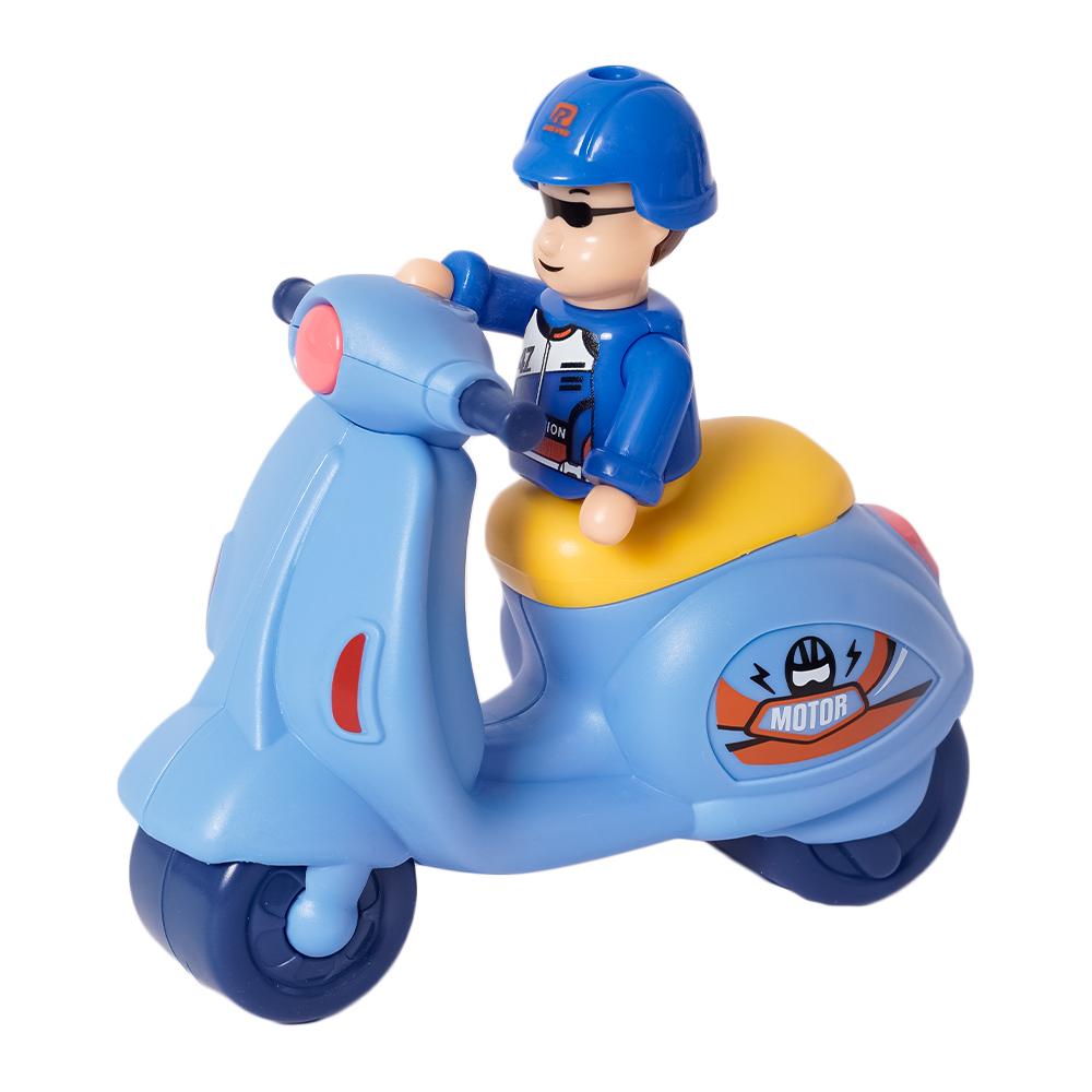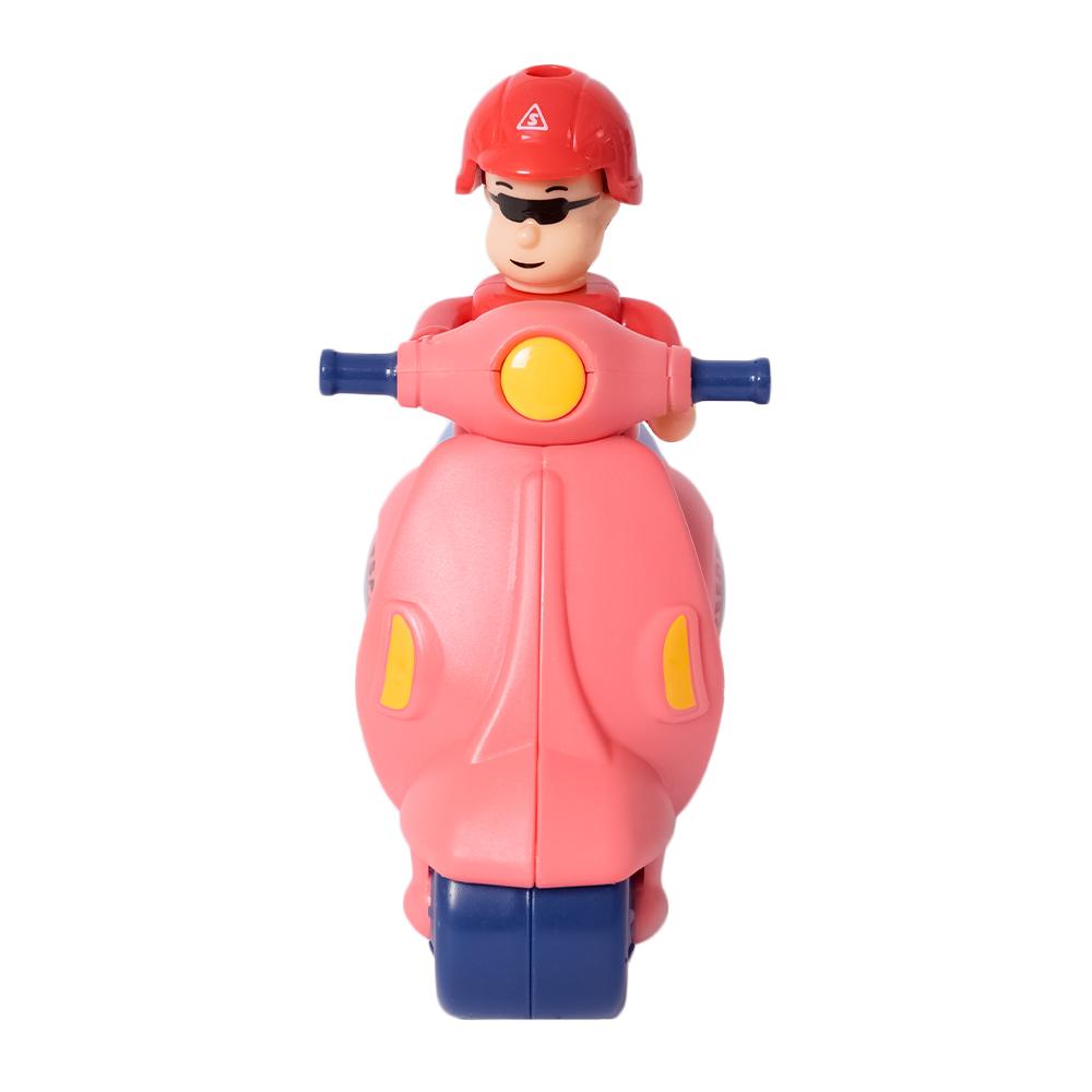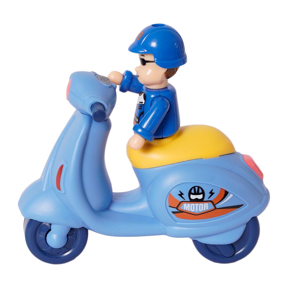 Deze mini scooter is perfect voor kleine avonturen in de woonkamer of op de speeltafel. Verkrijgbaar in drie vrolijke kleuren.