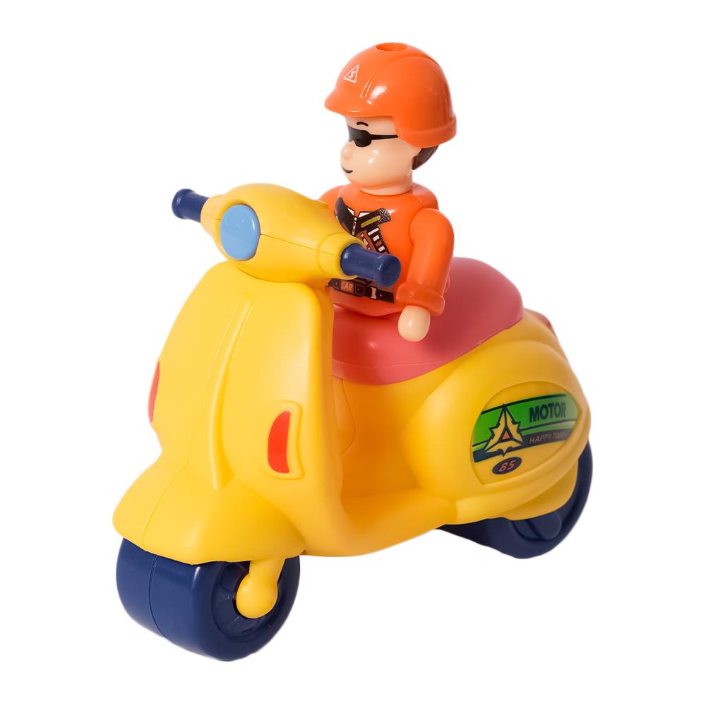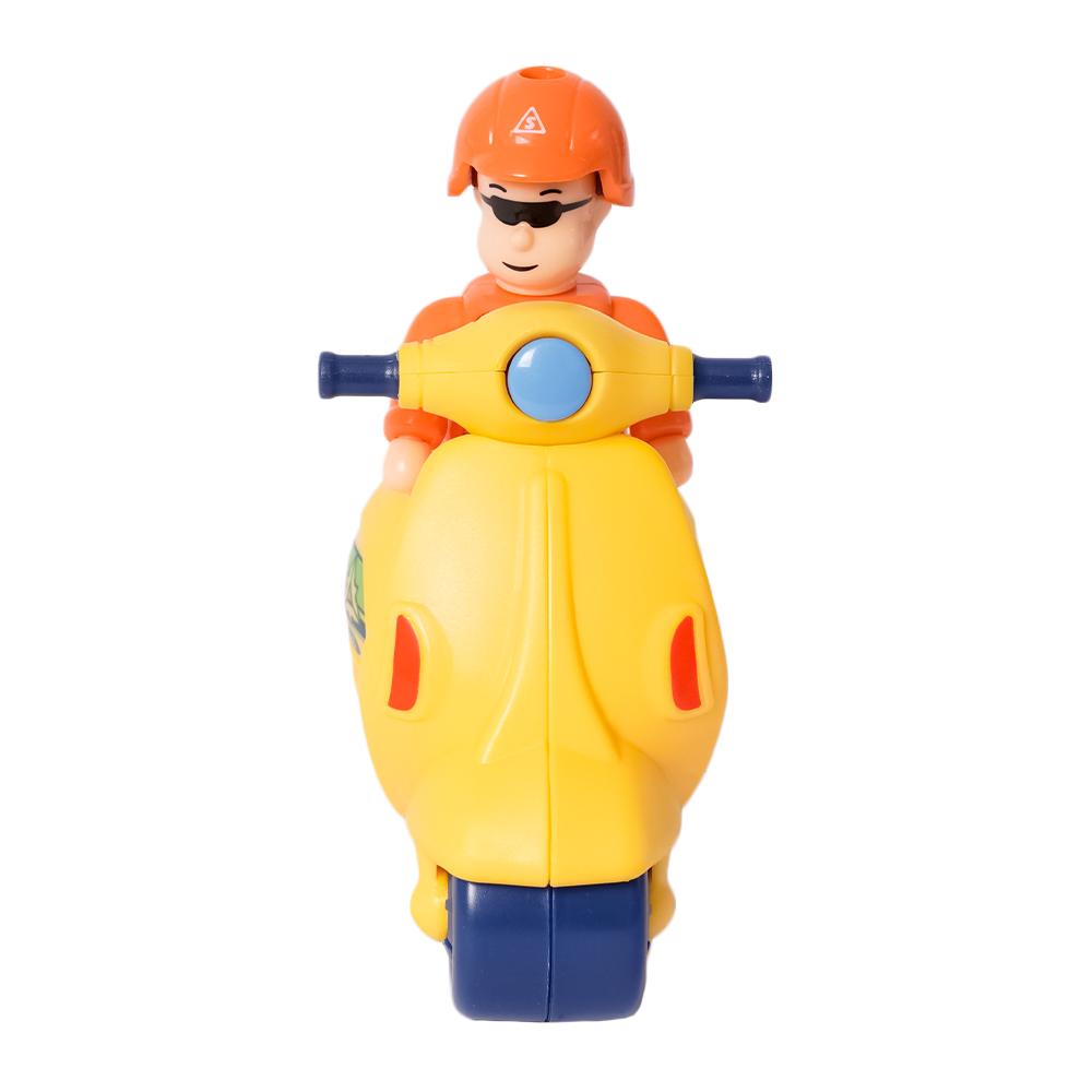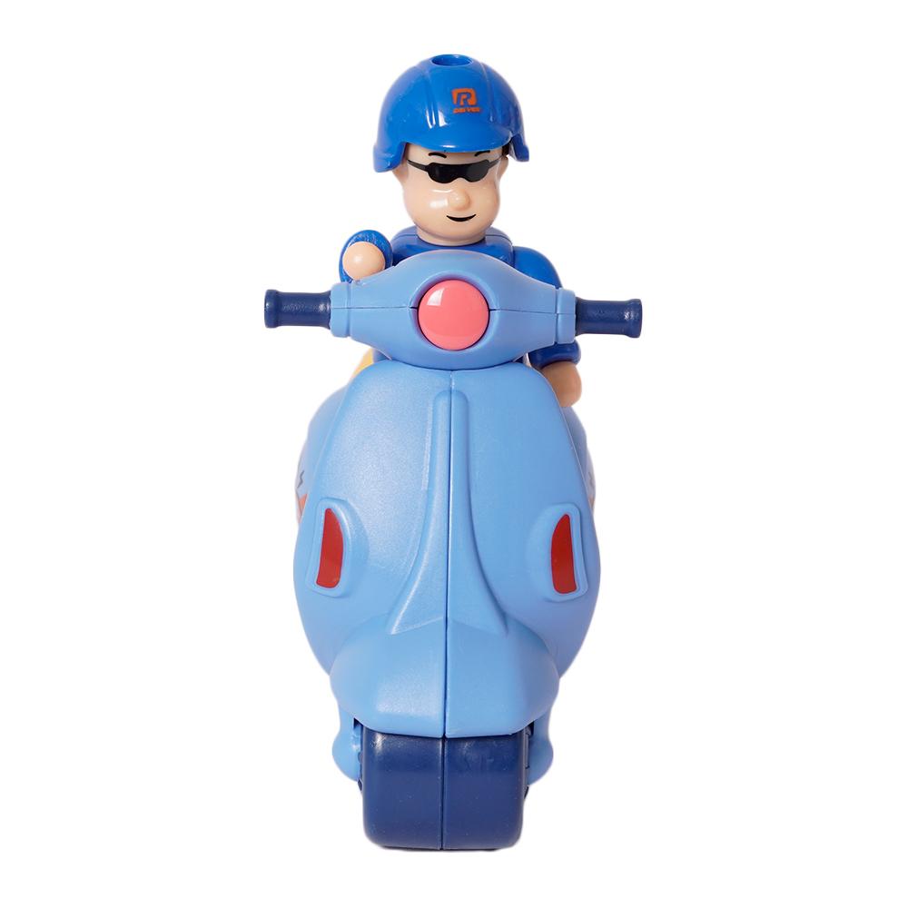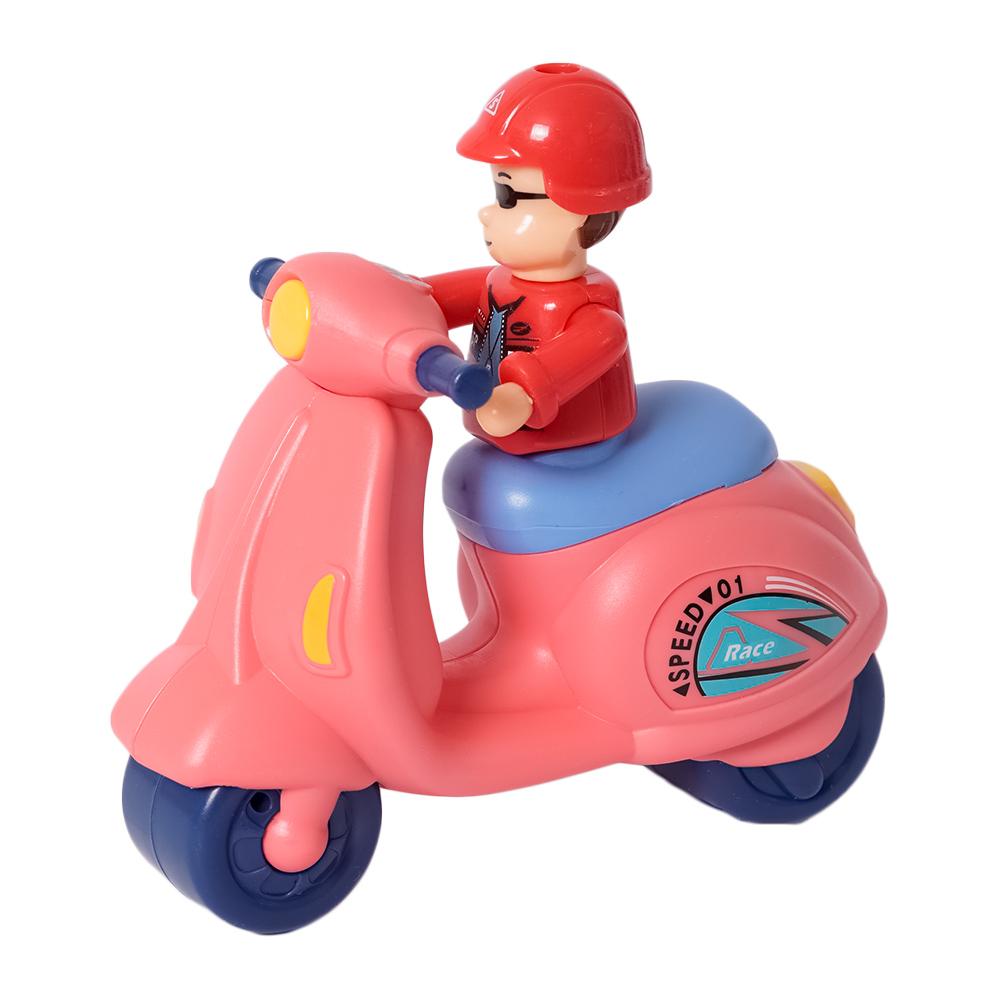 Deze mini scooter is perfect voor kleine avonturen in de woonkamer of op de speeltafel. Verkrijgbaar in drie vrolijke kleuren.