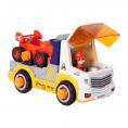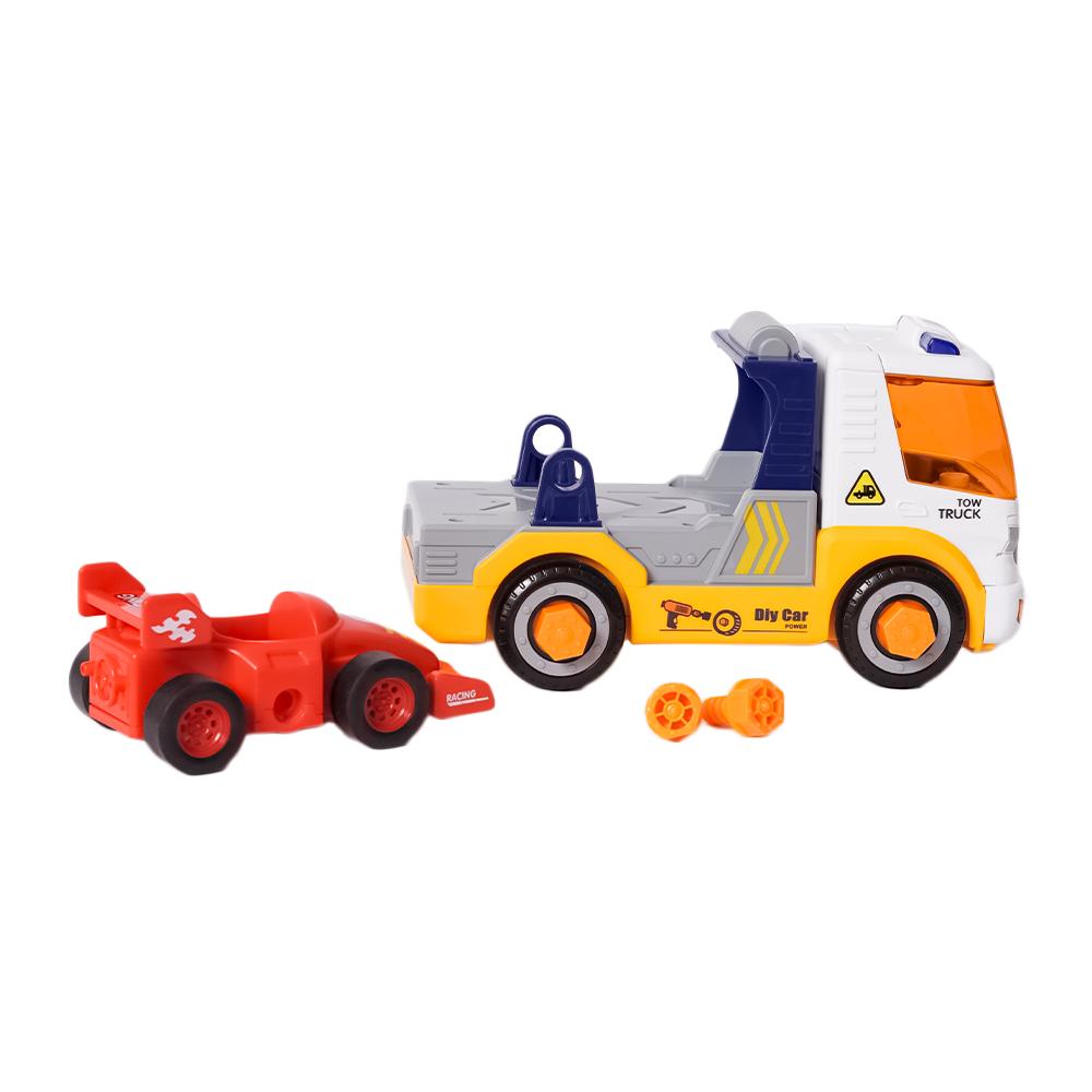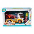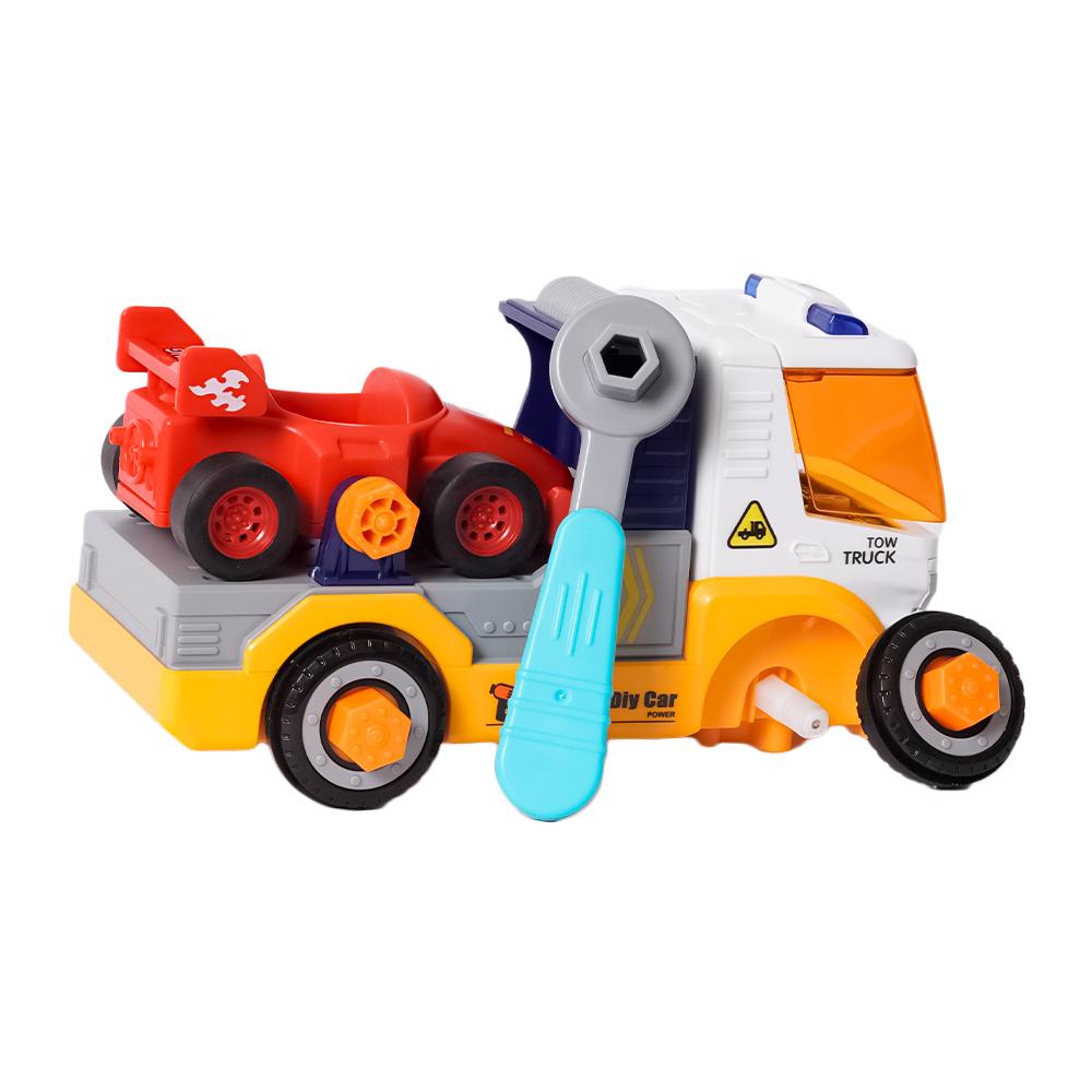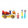 Deze robuuste speelgoedwagen van 27 cm lang is perfect voor kleine monteurs in de dop. Met de bijgeleverde tools kunnen kinderen zelf onderdelen losdraaien, zoals de wielen en andere elementen. Doe er 2 AA-batterijen in en het voertuig maakt echte geluiden: een startsound, een toeter en een vrolijk muziekje. Ook de koplampen lichten dan op!