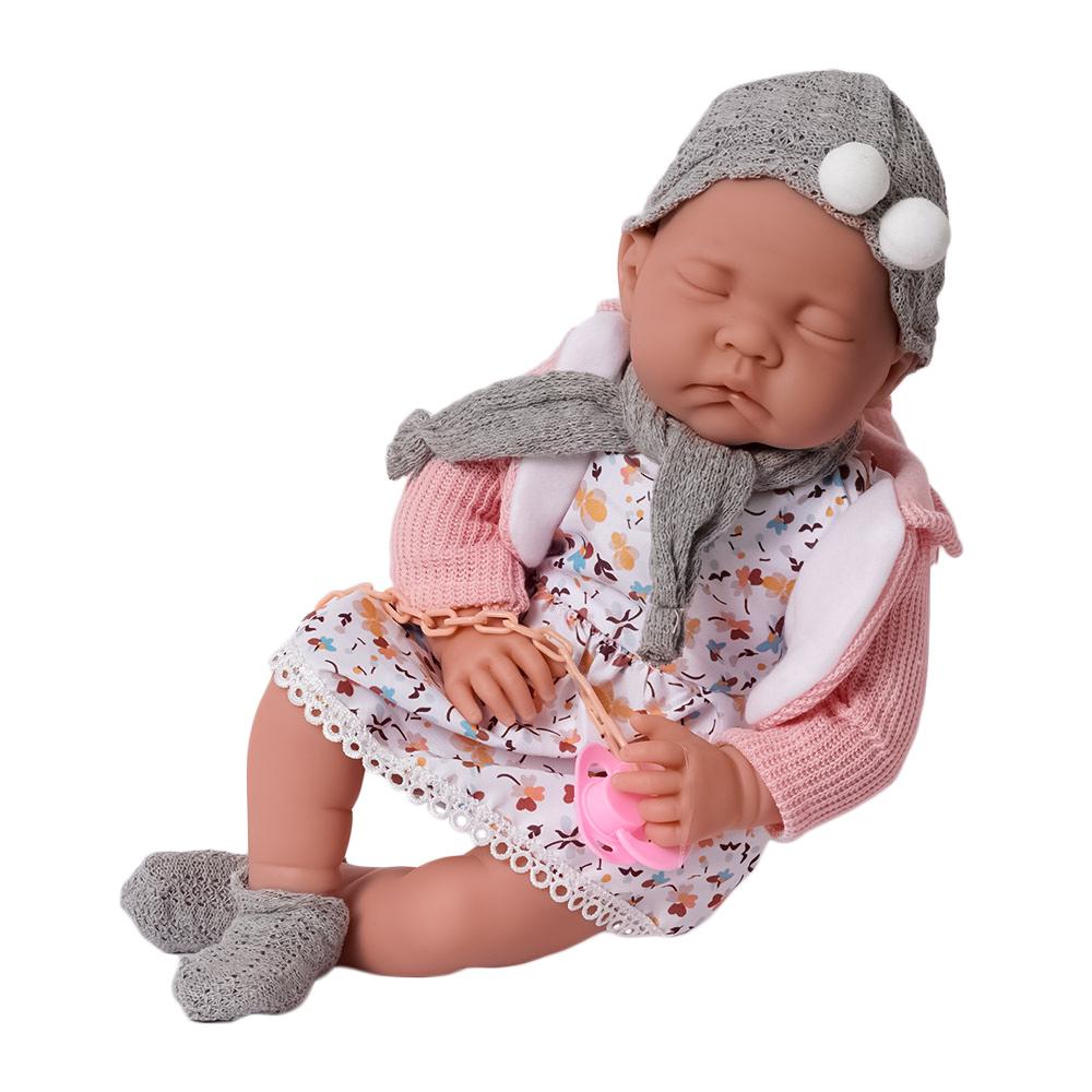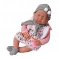 Maak kennis met de lieve Lily Baby pop, een schattige babypop van 40 cm die jouw hart direct zal veroveren! Deze realistisch uitziende pop draagt een kleurrijk jurkje, een zacht roze vestje en een grijze muts met pompons. Ze heeft een lieve slapende uitdrukking en wordt geleverd met een speentje.