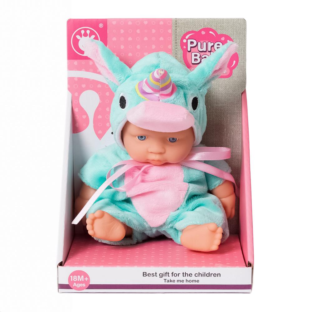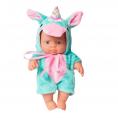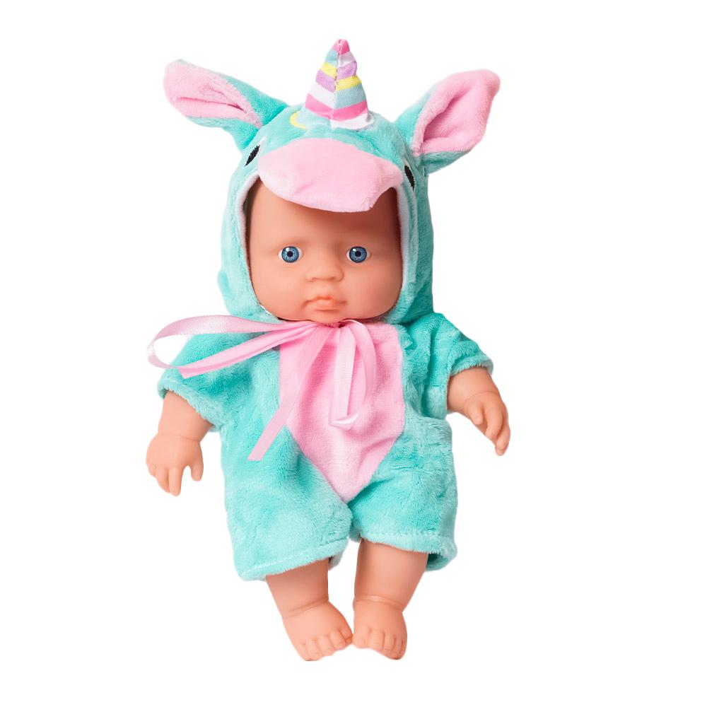 Droom weg met deze pop in een roze met blauwe eenhoornpakje met een blauw eenhoornmutsje. Haar zachte outfit en vrolijke uitstraling maken haar een echte favoriet. Perfect voor fantasierijk spel!