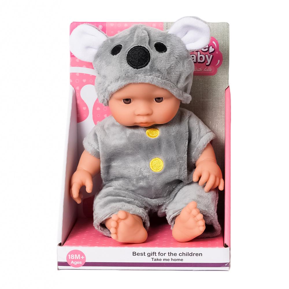 Deze knuffelbare babypop is verkleed als koala in een grijs pakje met een muts met zachte oortjes. Haar lieve gezichtje maakt haar onweerstaanbaar voor kleine verzorgers. Perfect voor knuffelen en rollenspel!