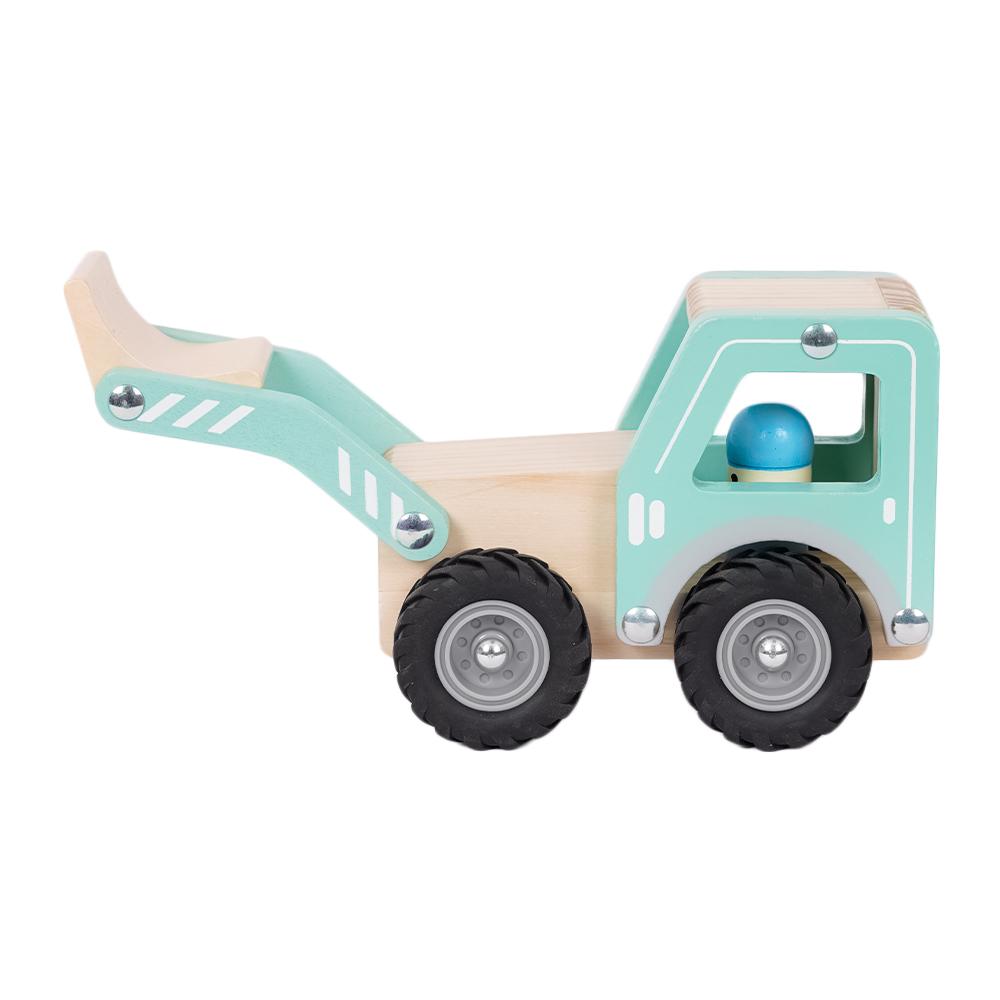 Deze houten graafmachine is het ideale speelgoed voor kinderen die gefascineerd zijn door bouwvoertuigen en graafwerkzaamheden. Het stevige houten ontwerp, de opvallende blauwe kleur en de rubberen banden maken het een geweldige aanvulling op elke speelgoedcollectie. De rubberen banden zorgen voor minder geluid tijden het spelen en zijn bovendien zacht voor de vloeren in huis.