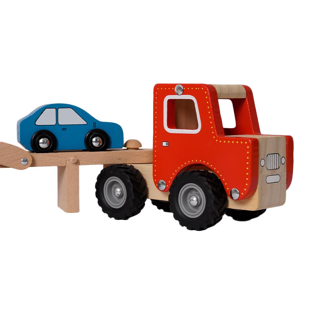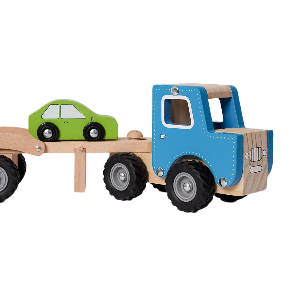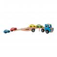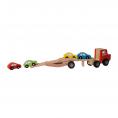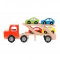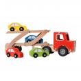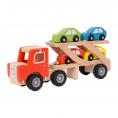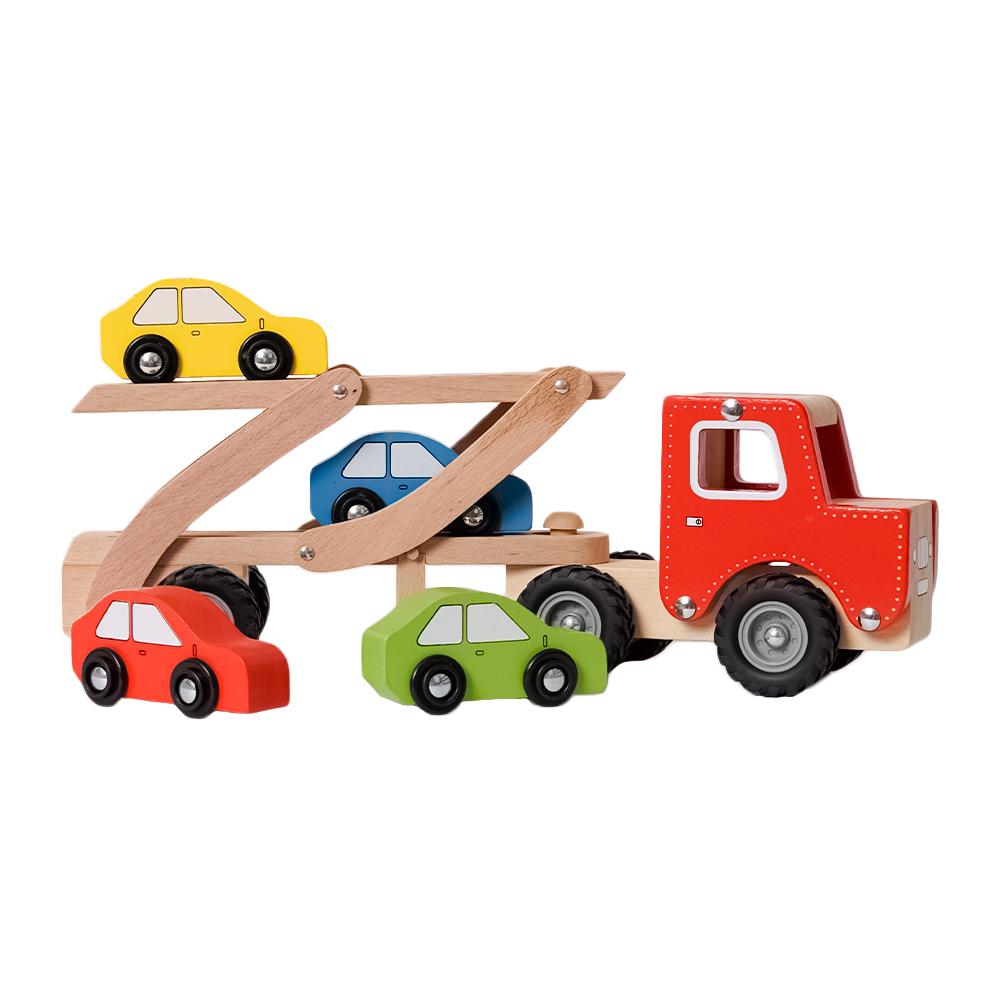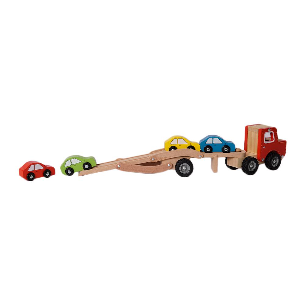 Deze houten autotransporter vrachtwagen is perfect voor jonge autoliefhebbers en kleine chauffeurs in spe. Met zijn stevige houten ontwerp en bijgeleverde vier kleine autootjes is dit speelgoed een geweldige toevoeging aan elke collectie.
