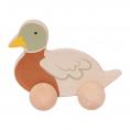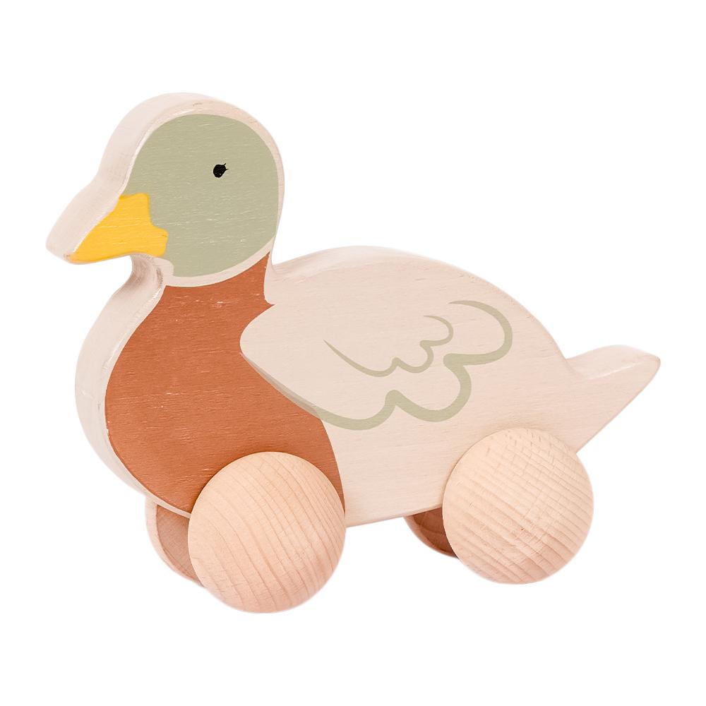 Deze vrolijke houten eend op wielen is perfect voor jonge kinderen die van dieren en rollend speelgoed houden. Dankzij het stevige houten ontwerp en de soepele wieltjes kan de eend moeiteloos door de kamer rijden. Dit stimuleert niet alleen de motorische vaardigheden, maar ook de fantasie en creativiteit van kinderen.