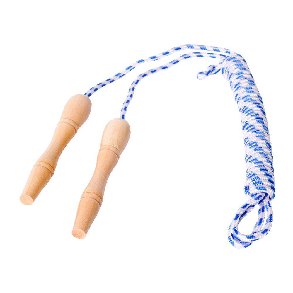 Dit klassieke springtouw zorgt voor urenlang speelplezier! Met stevig gevormde houten handvatten ligt het touw prettig in de hand en biedt het een goede grip tijdens het springen. Het touw is perfect voor zowel binnen als buiten en helpt kinderen hun coördinatie, balans en conditie te verbeteren.