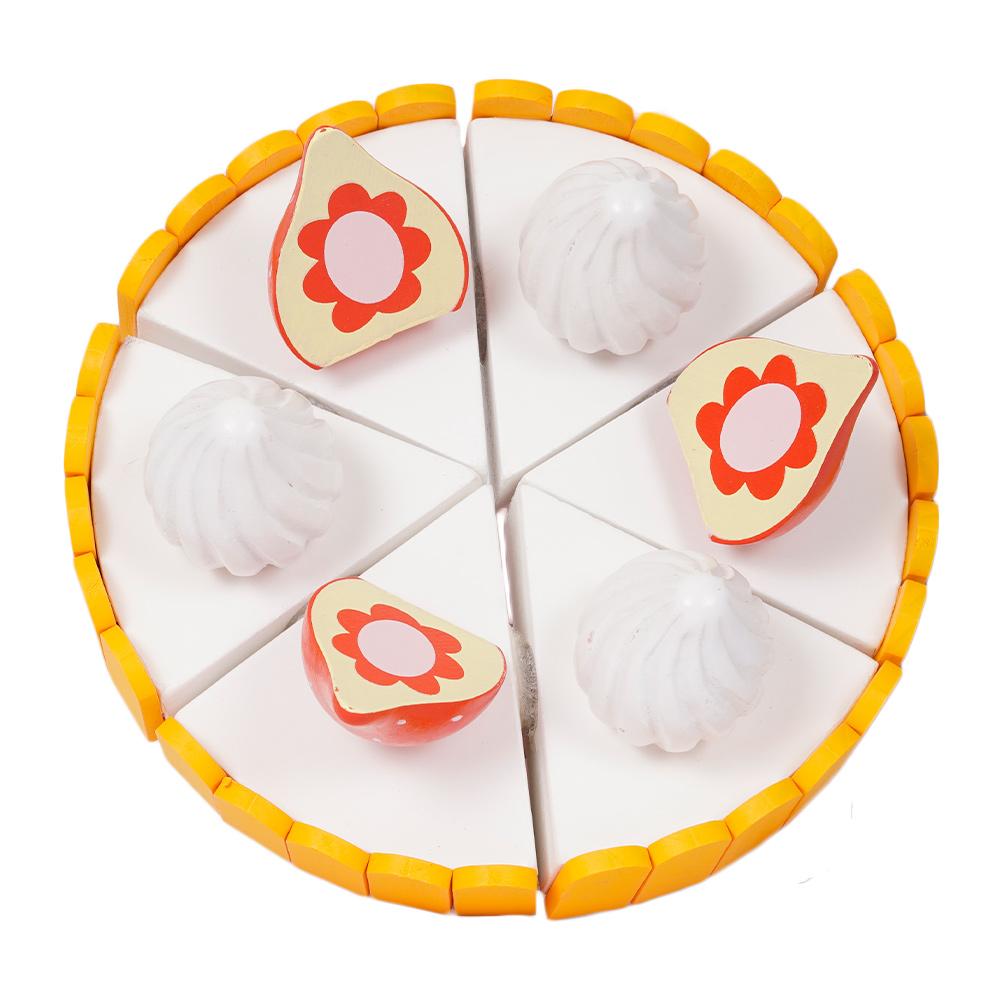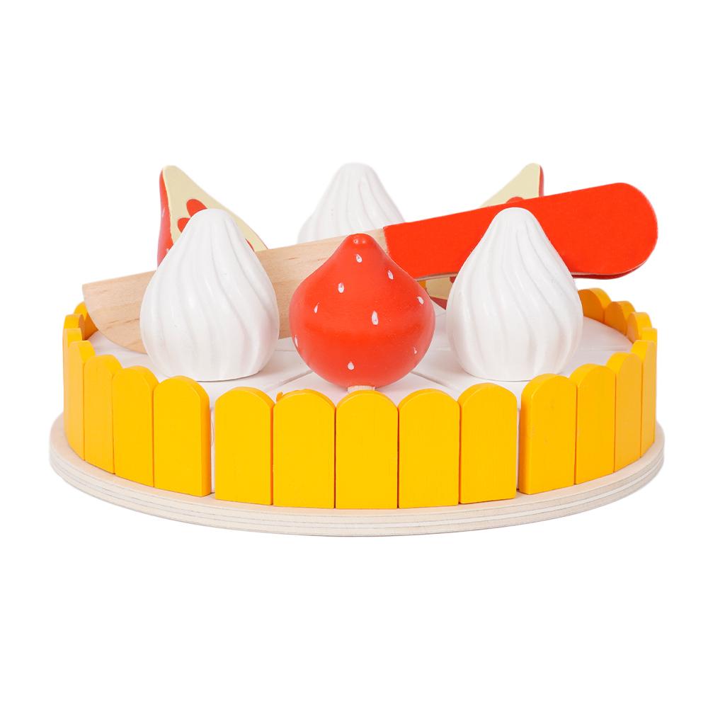 Dankzij de stevige houten constructie en de kleurrijke details is deze taart niet alleen leuk om mee te spelen, maar ook een mooie toevoeging aan de speelkeuken of kinderkamer. Ideaal voor eindeloos speelplezier en fantasierijke theekransjes!