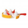 Deze vrolijke houten taart is perfect voor kleine bakkers en feestjes! De taart bestaat uit meerdere stukken die met klittenband aan elkaar vastzitten en eenvoudig ‘gesneden’ kunnen worden met het bijgeleverde houten mes. Dit stimuleert de fijne motoriek, creativiteit en het rollenspel bij kinderen.