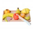 Deze kleurrijke houten fruit tray met klittenband is perfect voor kleine chef-koks en gezonde eters! De set bevat verschillende houten fruitsoorten, zoals onder andere een appel, banaan en mandarijn, die met klittenband aan elkaar vastzitten. Met het bijgeleverde houten mes kunnen kinderen het fruit ‘snijden’ en weer opnieuw samenstellen, wat hun fijne motoriek, hand-oogcoördinatie en fantasiespel stimuleert.