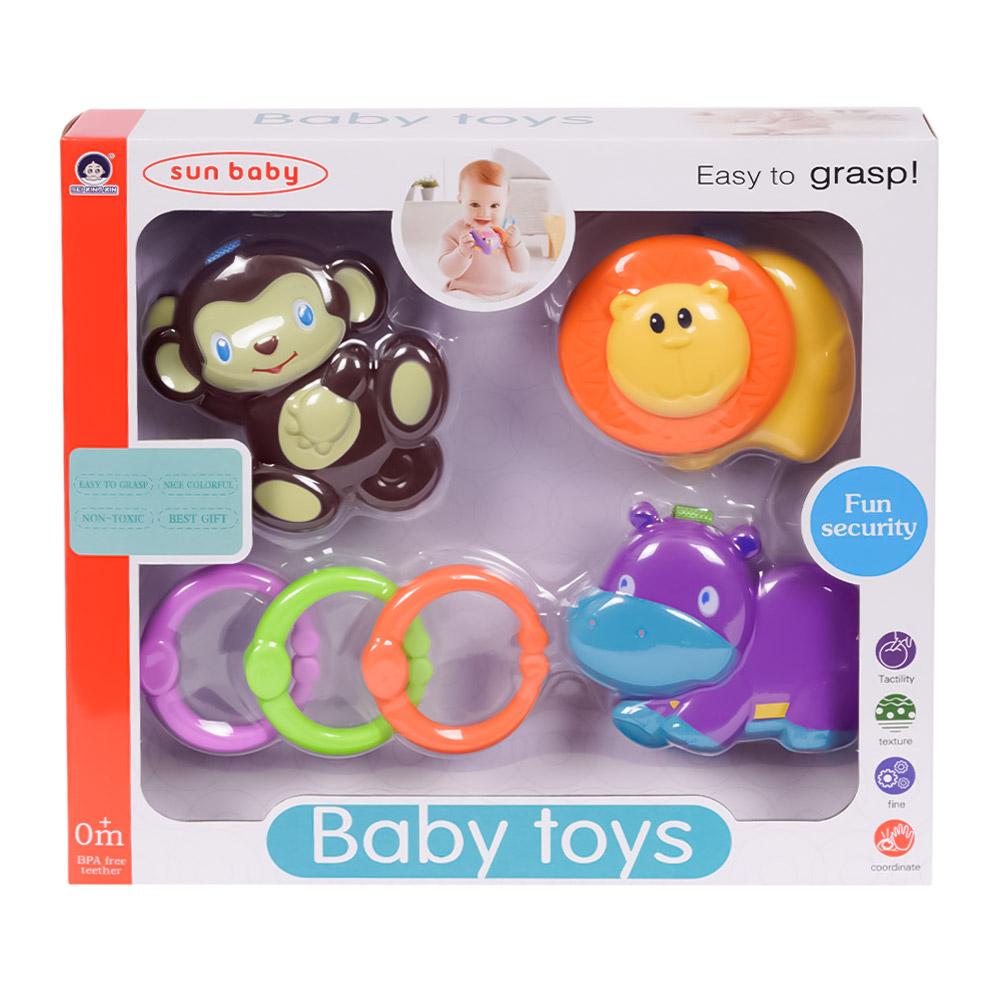 Deze cadeauverpakking bevat drie vrolijke rammelaars: een schattige aap, een stoere leeuw en een schattig nijlpaard. Elke rammelaar maakt een vrolijk rinkelgeluid bij elke schudbeweging, wat zorgt voor extra plezier en stimuleert de zintuigen van je baby. Het lichte ontwerp maakt de rammelaars perfect voor kleine handjes om vast te houden en ermee te spelen, terwijl het schudden de fijne motoriek en hand-oogcoördinatie bevordert.