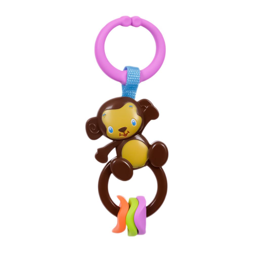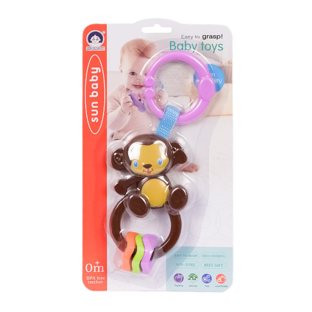 Deze donkerbruine aap rammelaar met ringen heeft een schattige en uitnodigende uitstraling die je baby zal fascineren. De rammelaar is lekker licht, waardoor hij makkelijk vast te houden is voor kleine handjes, of je nu thuis bent, onderweg of in de kinderwagen. De rinkelende ringen zorgen voor extra plezier, terwijl de kleuren en texturen de zintuigen van je baby ontwikkelen.