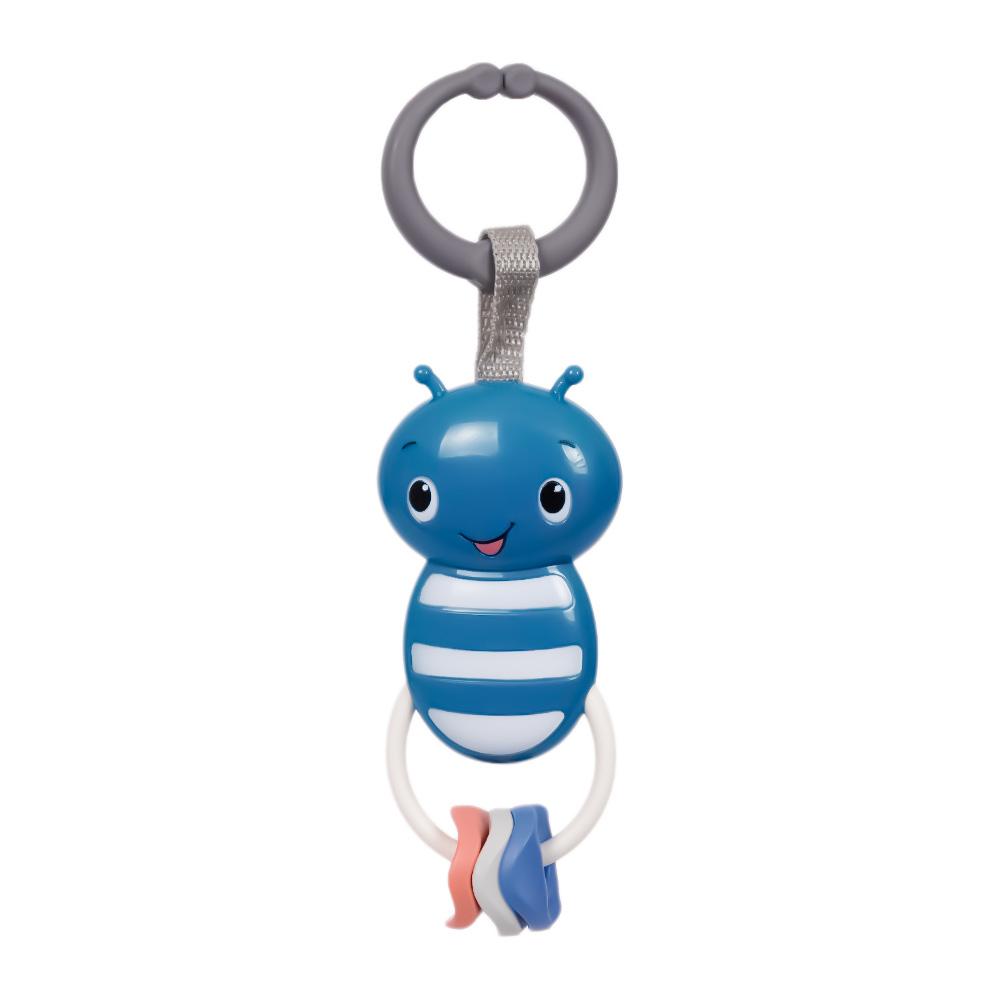 Deze donkerblauwe en witte bij rammelaar met ringen heeft een charmante en rustgevende uitstraling, perfect voor je baby. Het lichte gewicht maakt de rammelaar ideaal voor kleine handjes om mee te spelen, of het nu thuis, in de kinderwagen of onderweg is. De rinkelende ringen zorgen voor extra plezier, terwijl de rustige kleuren en verschillende texturen de zintuigen van je baby stimuleren.