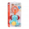 De vrolijke kleuren en het speelse ontwerp trekken de aandacht van je kleintje en moedigen aan om te grijpen, te schudden en te spelen. Bovendien heeft de rammelaar een handige C-klip, zodat je hem eenvoudig kunt bevestigen aan de kinderwagen, buggy of wieg, zodat je baby altijd van het geluid kan genieten, waar je ook bent.