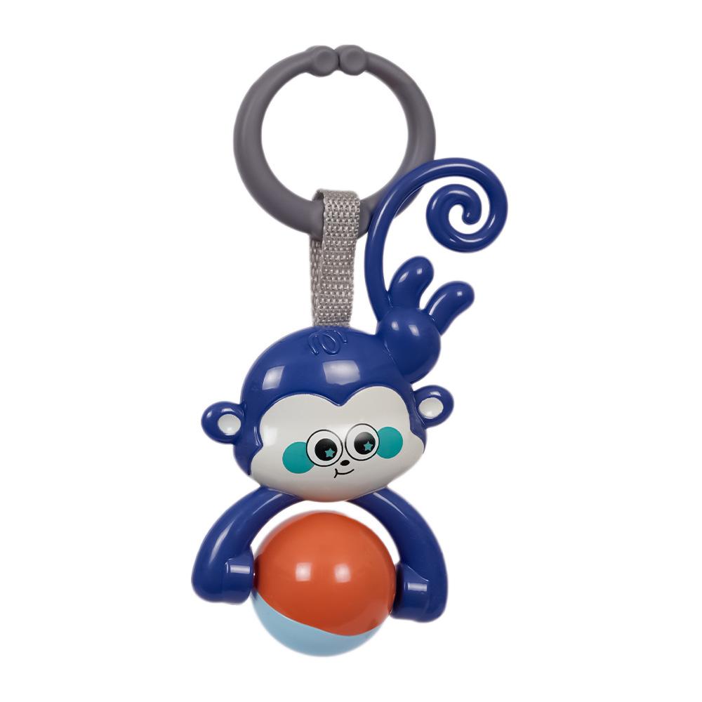 De donkerblauwe aap rammelaar met bal is een kleurrijk en stimulerend speeltje voor je baby! Het schattige ontwerp met heldere kleuren en een bewegend balletje dat rinkelt bij elke schudbeweging zorgt voor uren plezier en vermaak. Het geluid van de rinkelende bal helpt de zintuigen van je baby te prikkelen, terwijl het spelen met de rammelaar de fijne motoriek bevordert.
