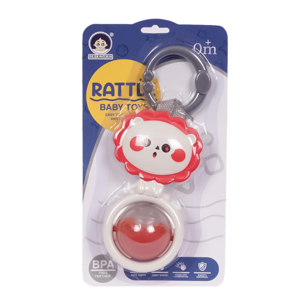 De wit met rode leeuw rammelaar met bal is een kleurrijk en stimulerend speeltje voor je baby! Het schattige ontwerp met heldere kleuren en een bewegend balletje dat rinkelt bij elke schudbeweging zorgt voor uren plezier en vermaak. Het geluid van de rinkelende bal helpt de zintuigen van je baby te prikkelen, terwijl het spelen met de rammelaar de fijne motoriek bevordert.