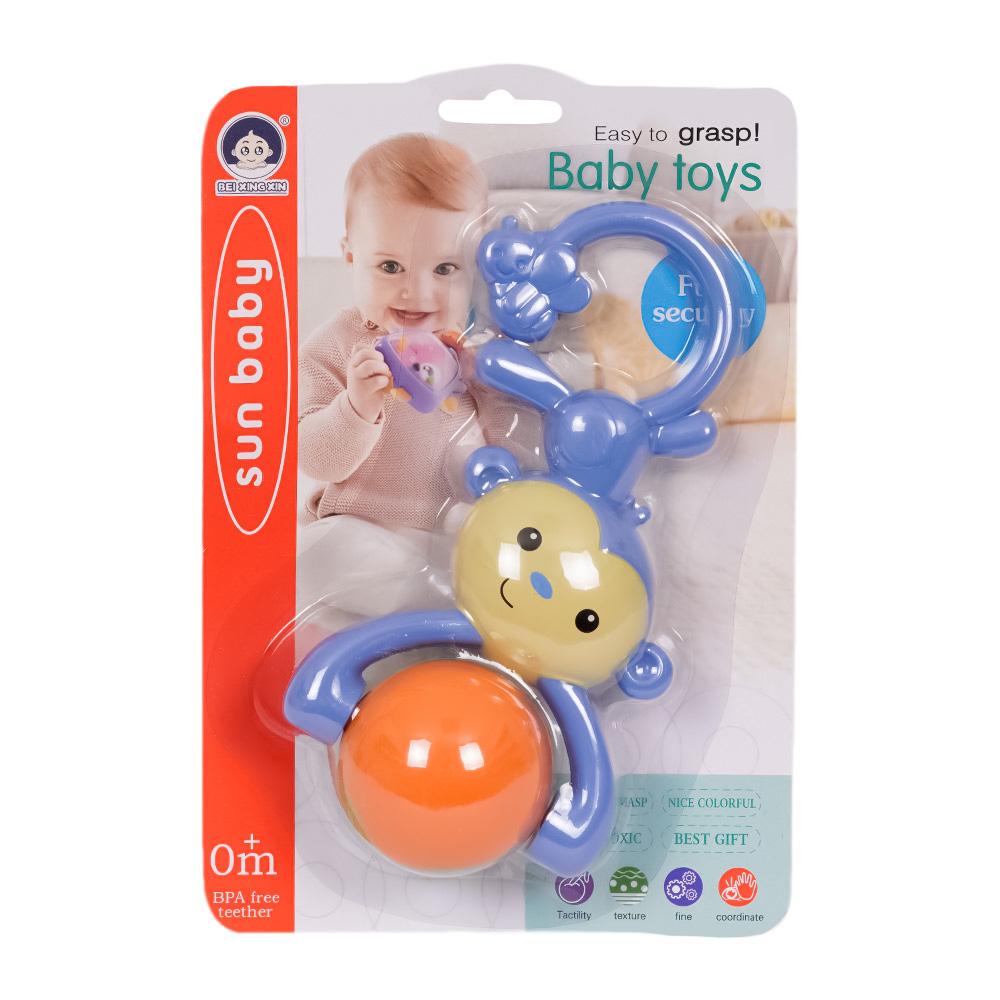 De lichtblauwe hangende aap rammelaar met bal is een kleurrijk en stimulerend speeltje voor je baby! Het schattige ontwerp met heldere kleuren en een bewegend balletje dat rinkelt bij elke schudbeweging zorgt voor uren plezier en vermaak. Het geluid van de rinkelende bal helpt de zintuigen van je baby te prikkelen, terwijl het spelen met de rammelaar de fijne motoriek bevordert.
