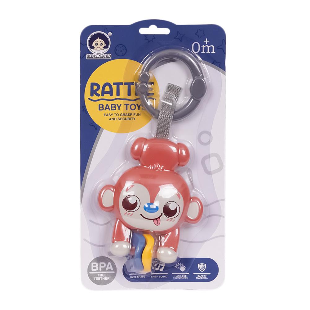 De lichtbruine hangende aap rammelaar met ringen is een charmant en stimulerend speeltje voor je baby. De schattige hangende aap maakt het spelen nog leuker en moedigt je kleintje aan om te grijpen, schudden en ermee te spelen. De rinkelende ringen zorgen voor extra geluid en plezier, en helpen de zintuigen van je baby te stimuleren.